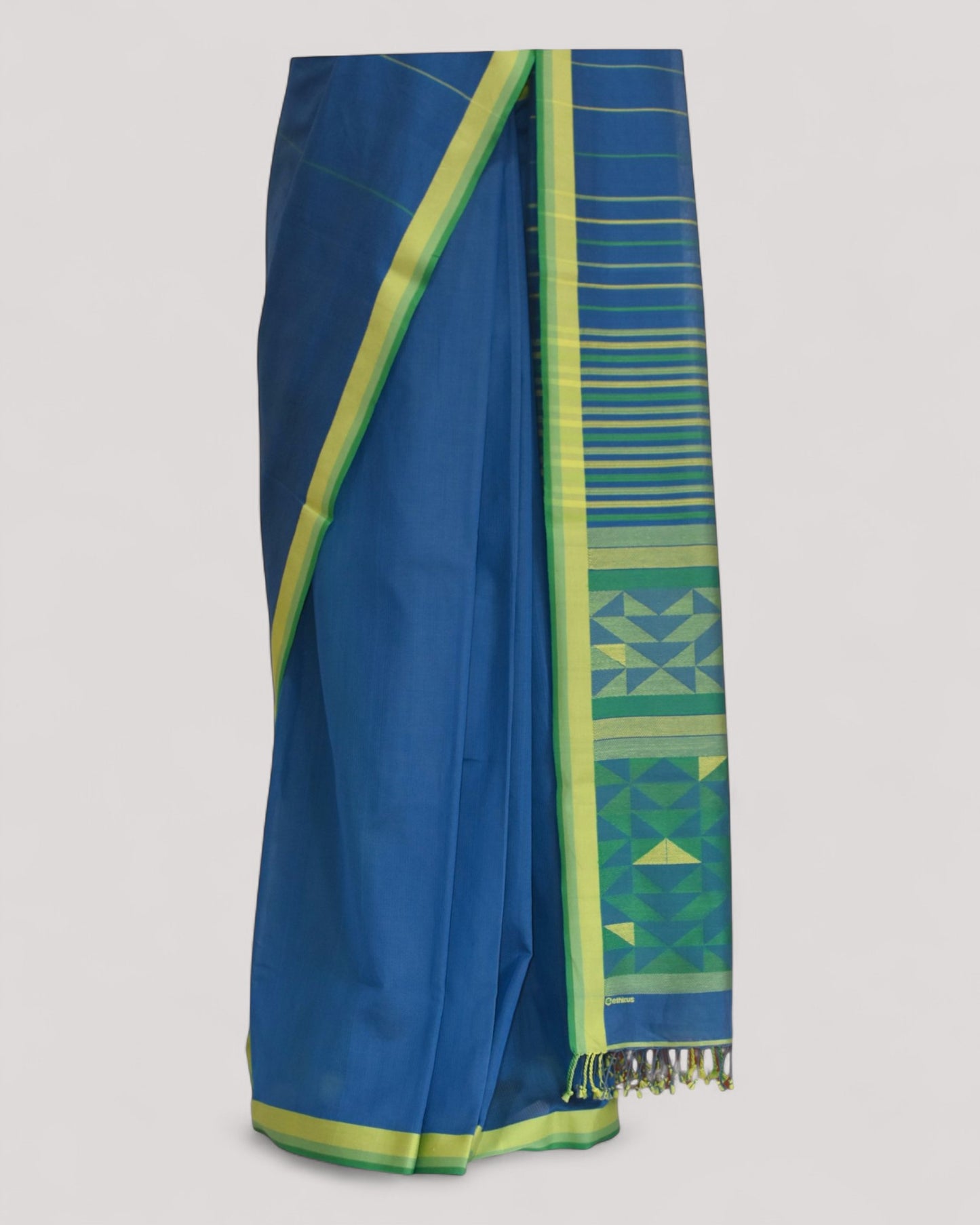 Blue - Triangle Motif Organic Cotton Saree