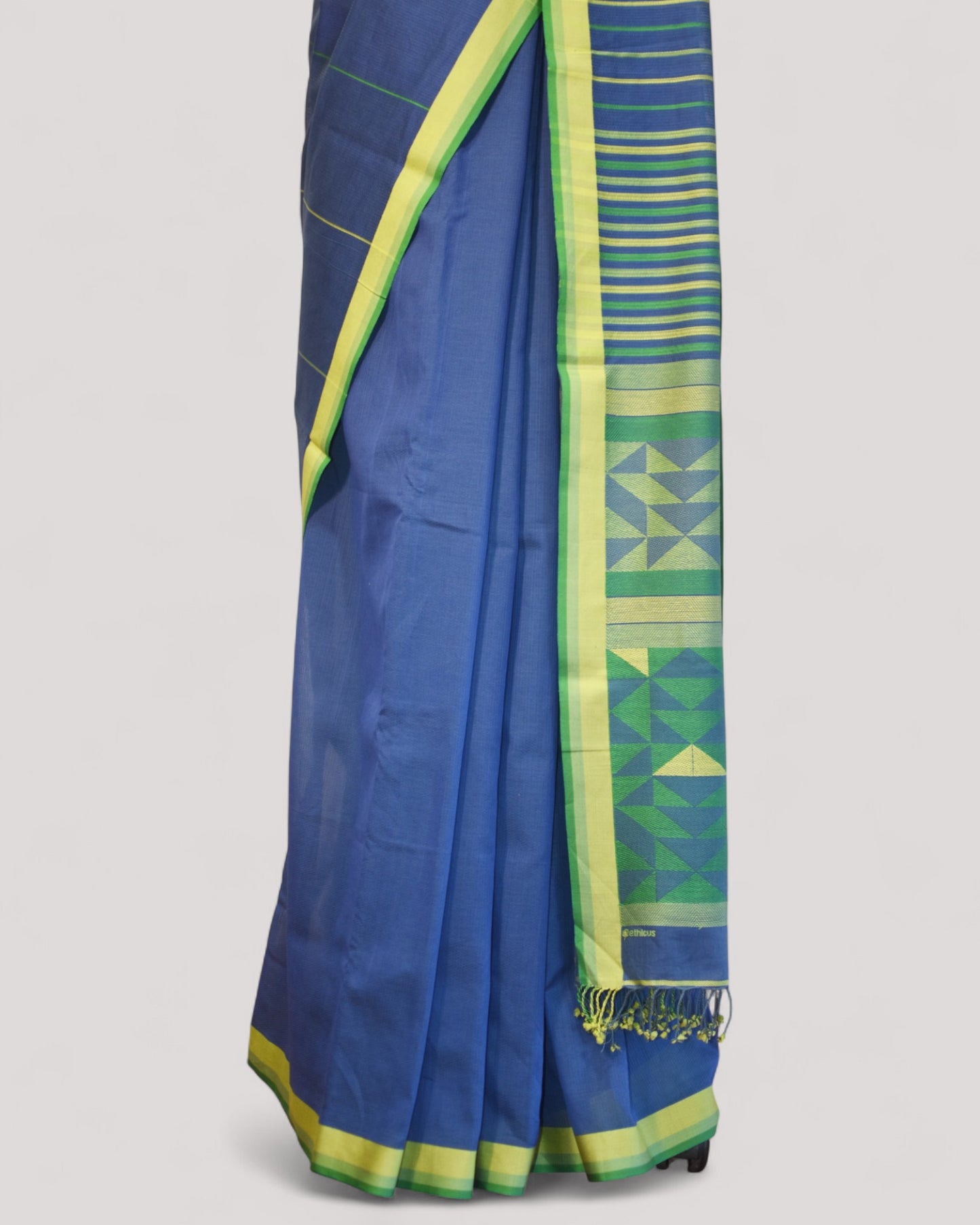 Electric Blue - Triangle Motif Organic Cotton Saree