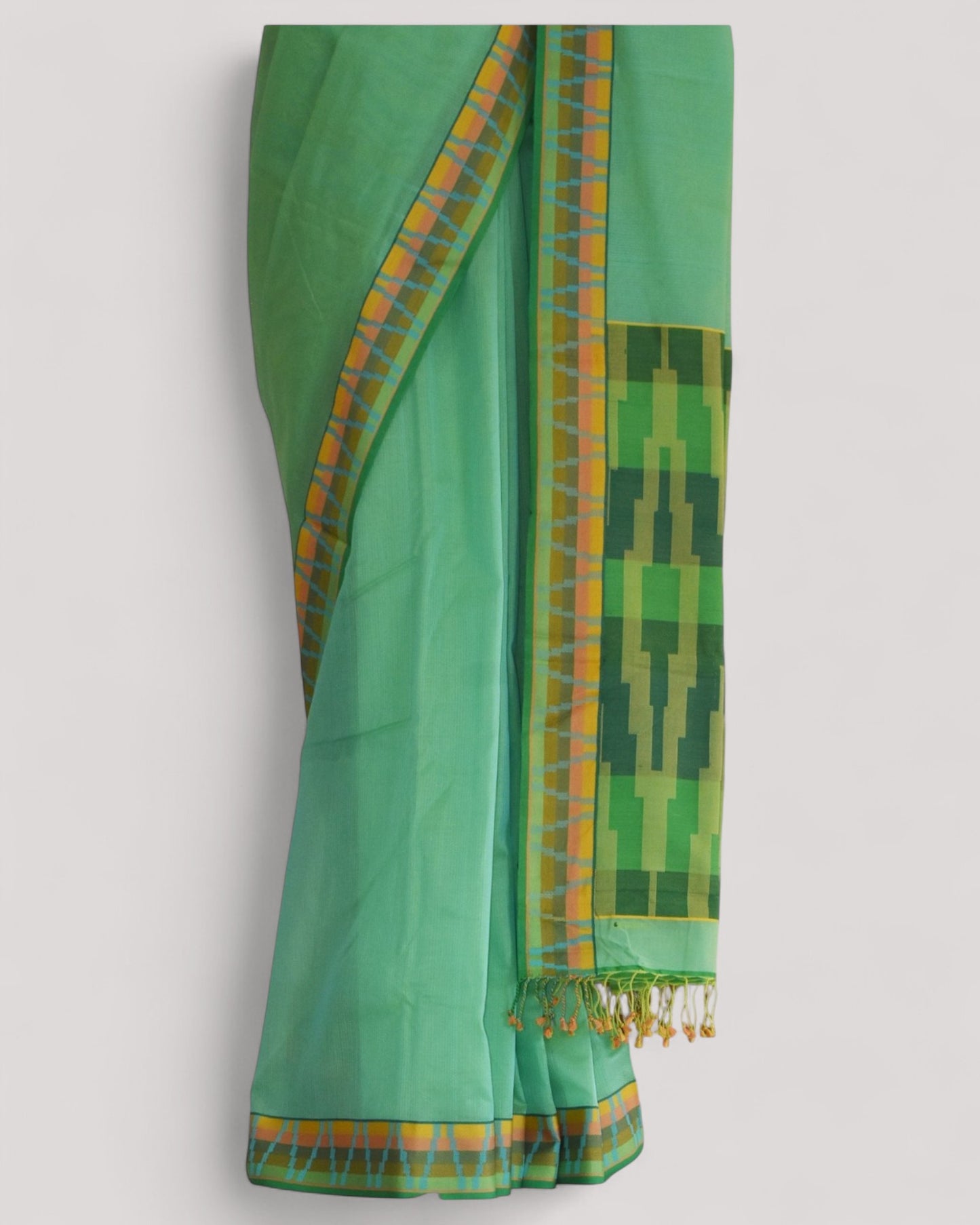 Sea Blue - Gopuram Motif Organic Cotton Saree