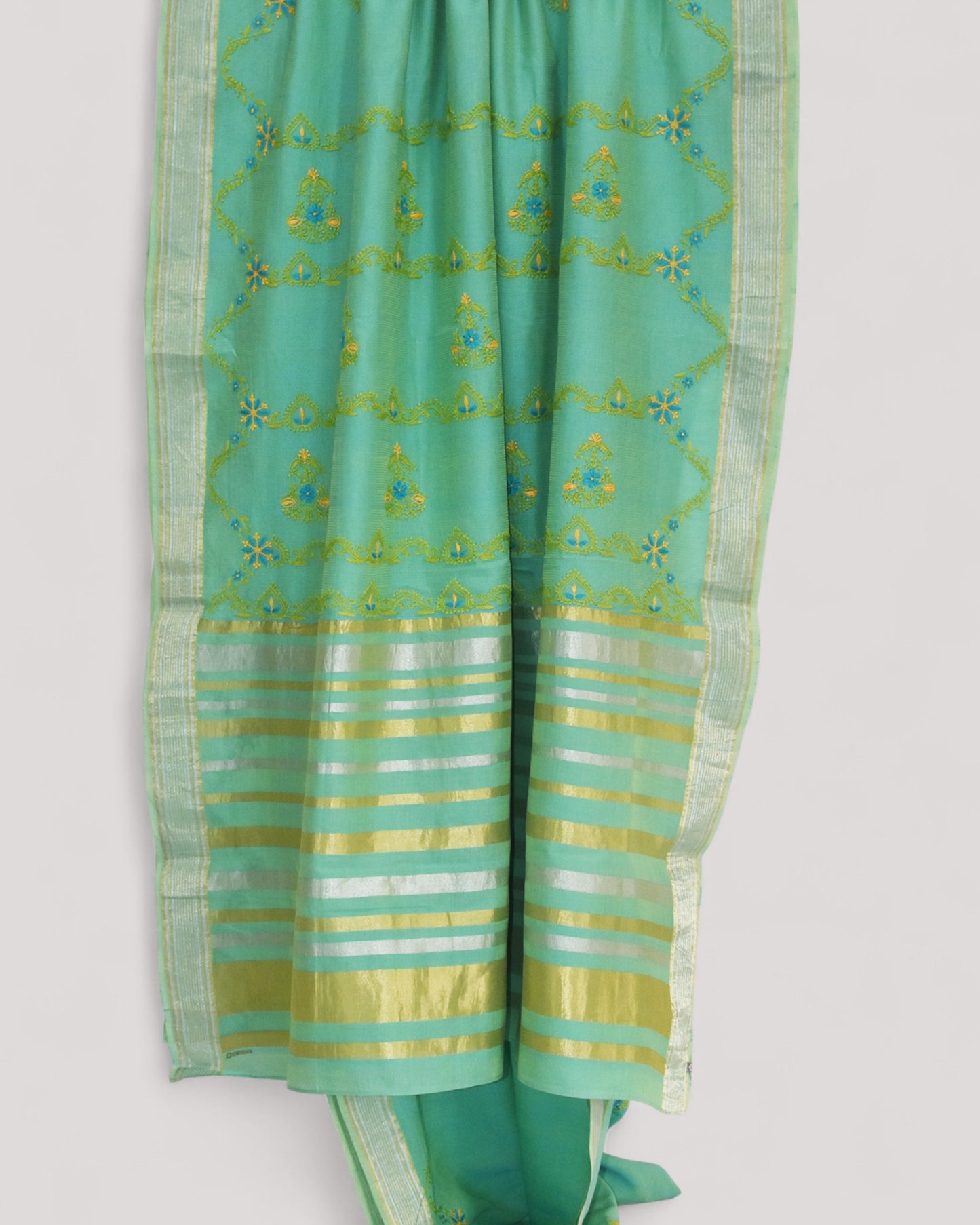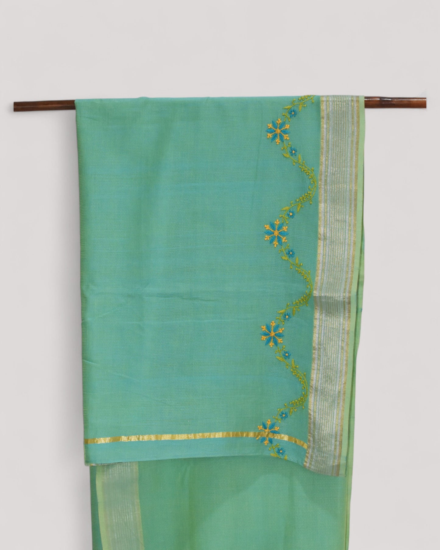 Sea Blue - Hand Embroidered Organic Cotton Saree