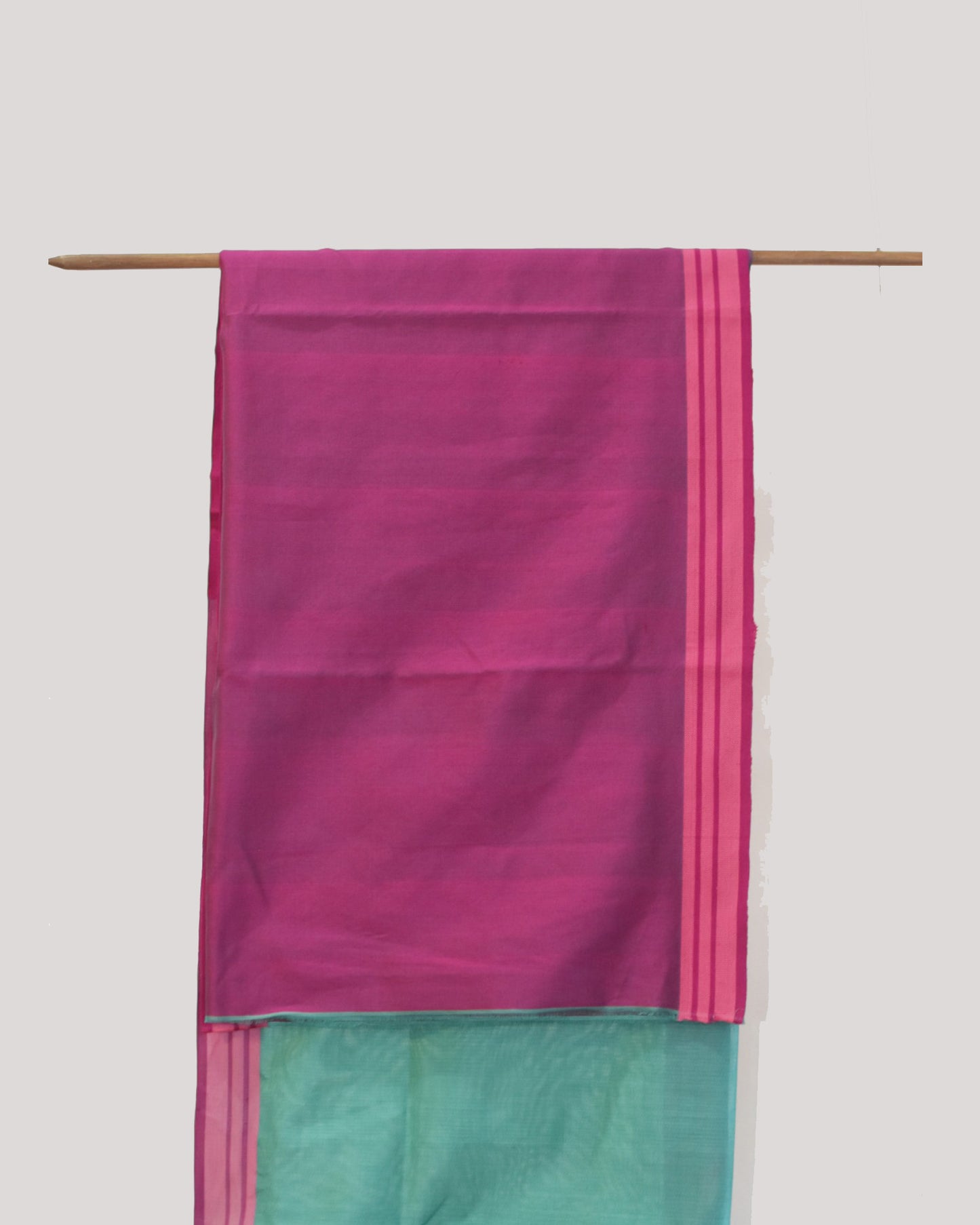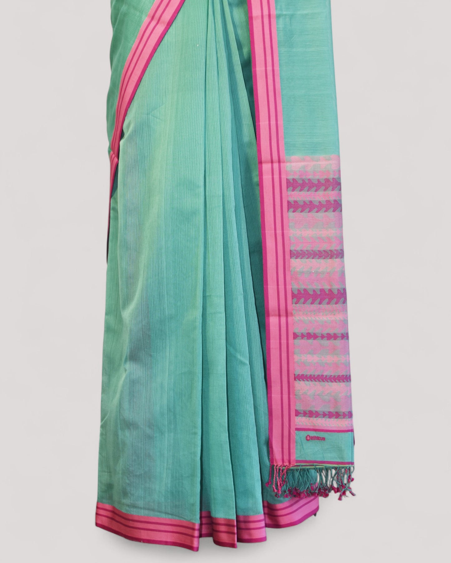 Sea Blue - Tulip Motif Organic Cotton Saree