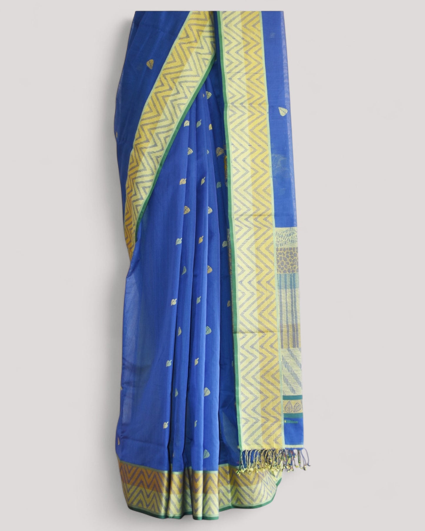 Blue - Tree & Leaves Motif Organic Cotton Saree
