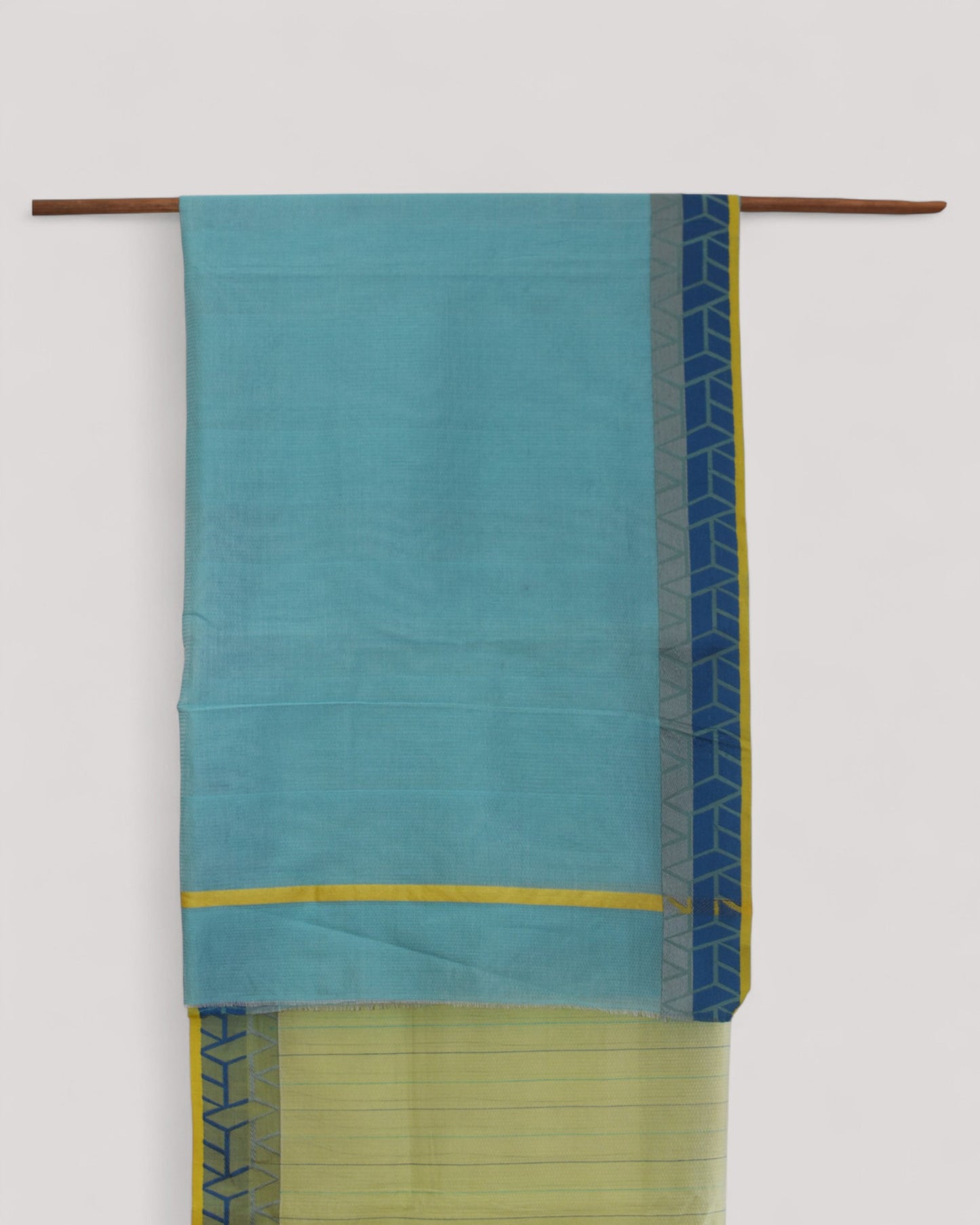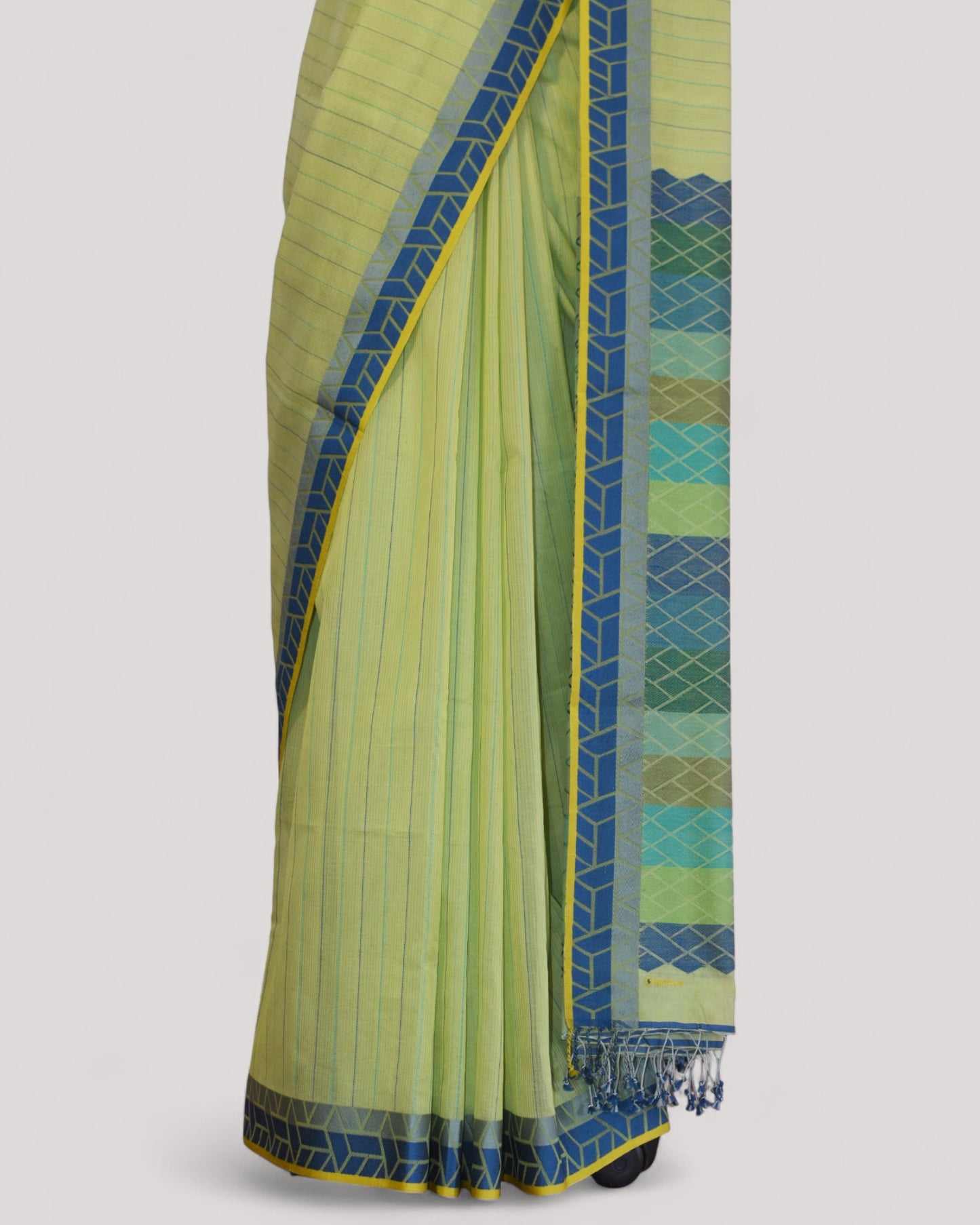 Light Green - Rectangle Motif Organic Cotton Saree