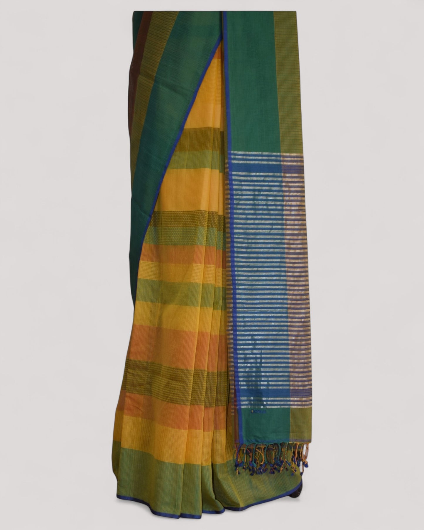 Green & Yellow - Stitch Texture Organic Cotton Saree