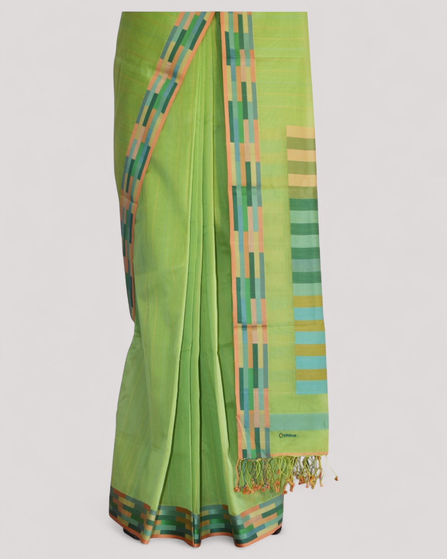 Parrot Green - Rectangle Quilt Organic Cotton Saree