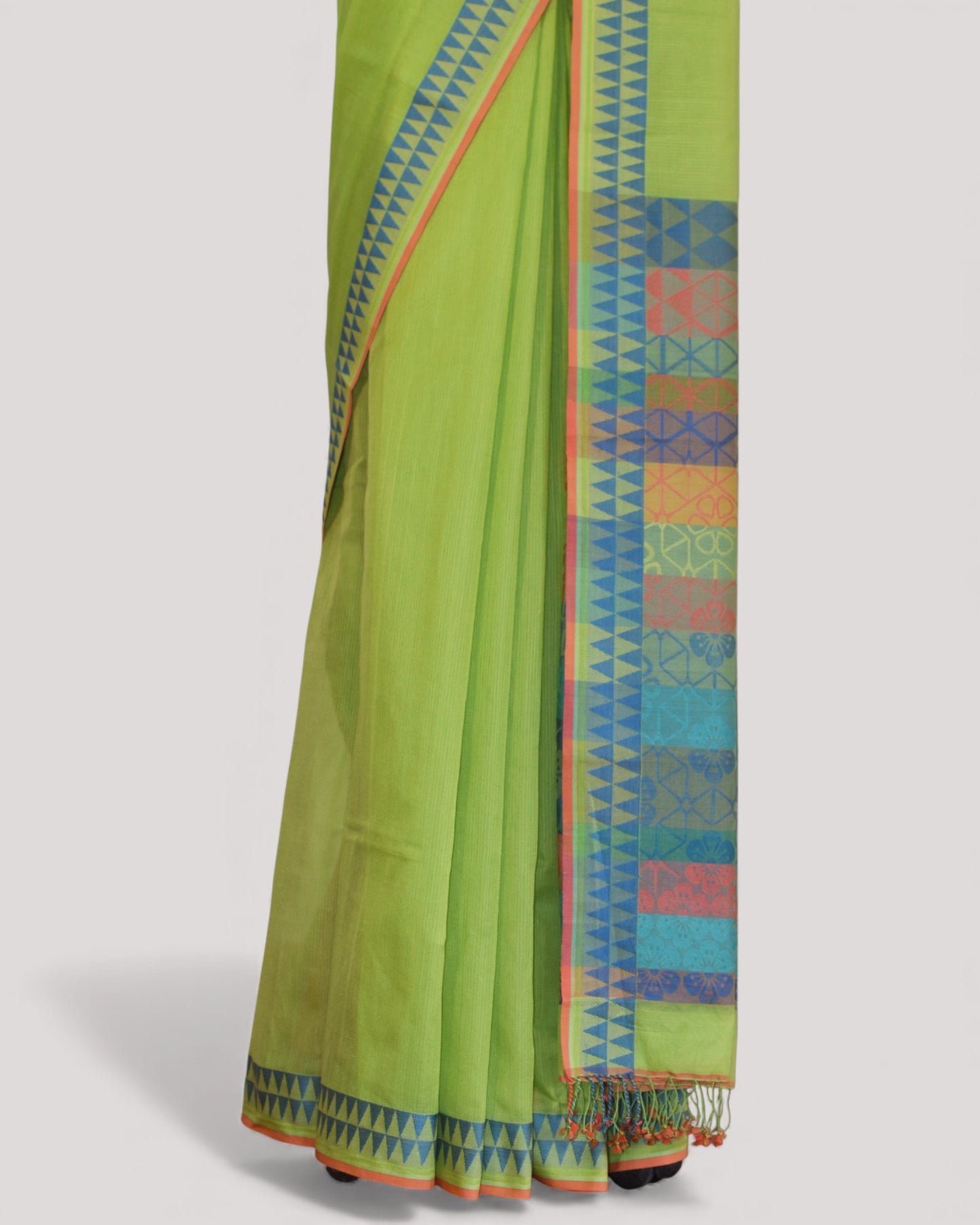 Parrot Green - Cherry Blossom Motif Organic Cotton Saree