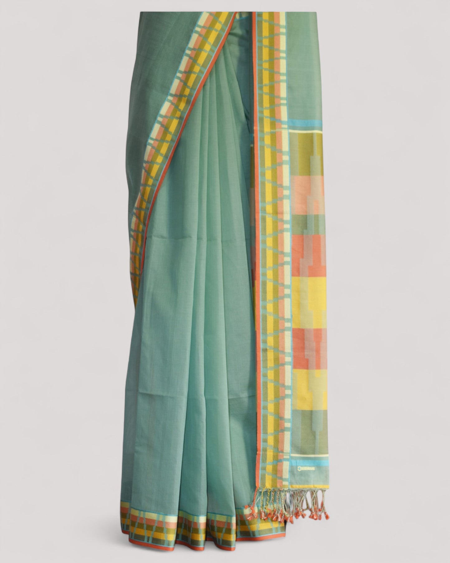 Sea Green - Gopuram Motif Organic Cotton Saree
