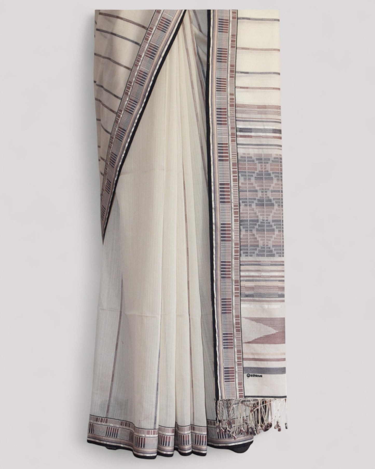 Off-White - Zig Zag Motif Organic Cotton Saree