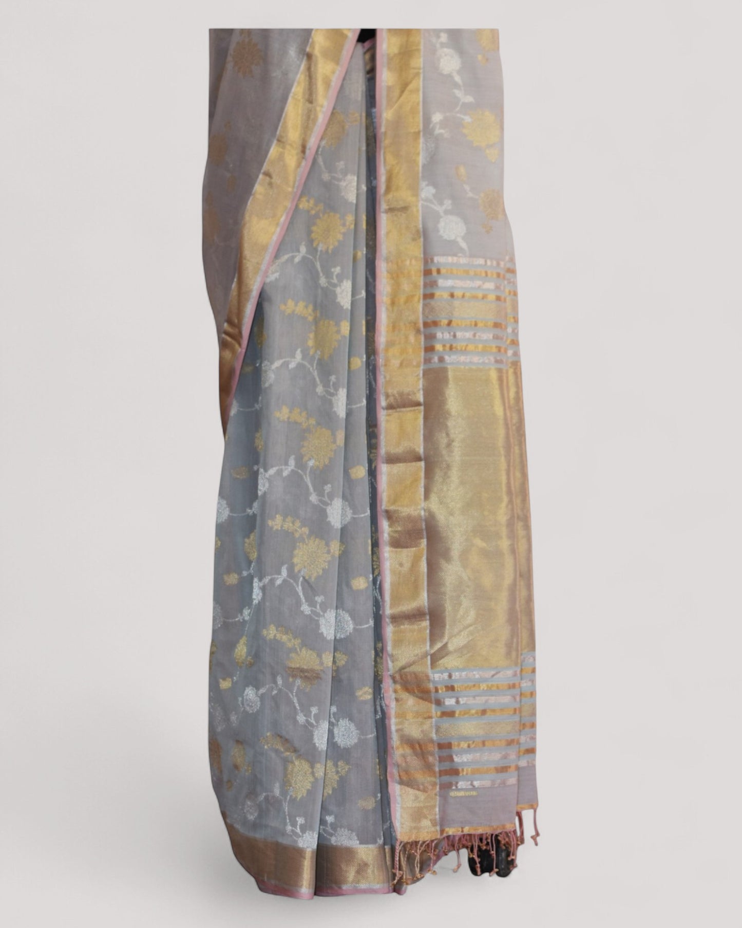Ash Grey - Gilded Grove Organic Cotton Saree