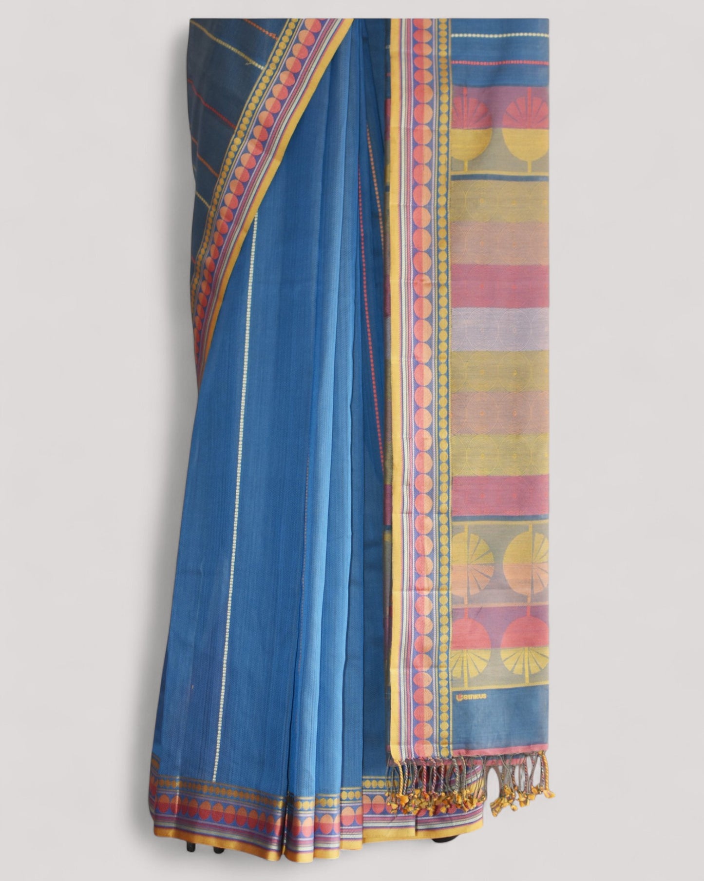 Bluish Grey - Spherical Grace Organic Cotton Saree