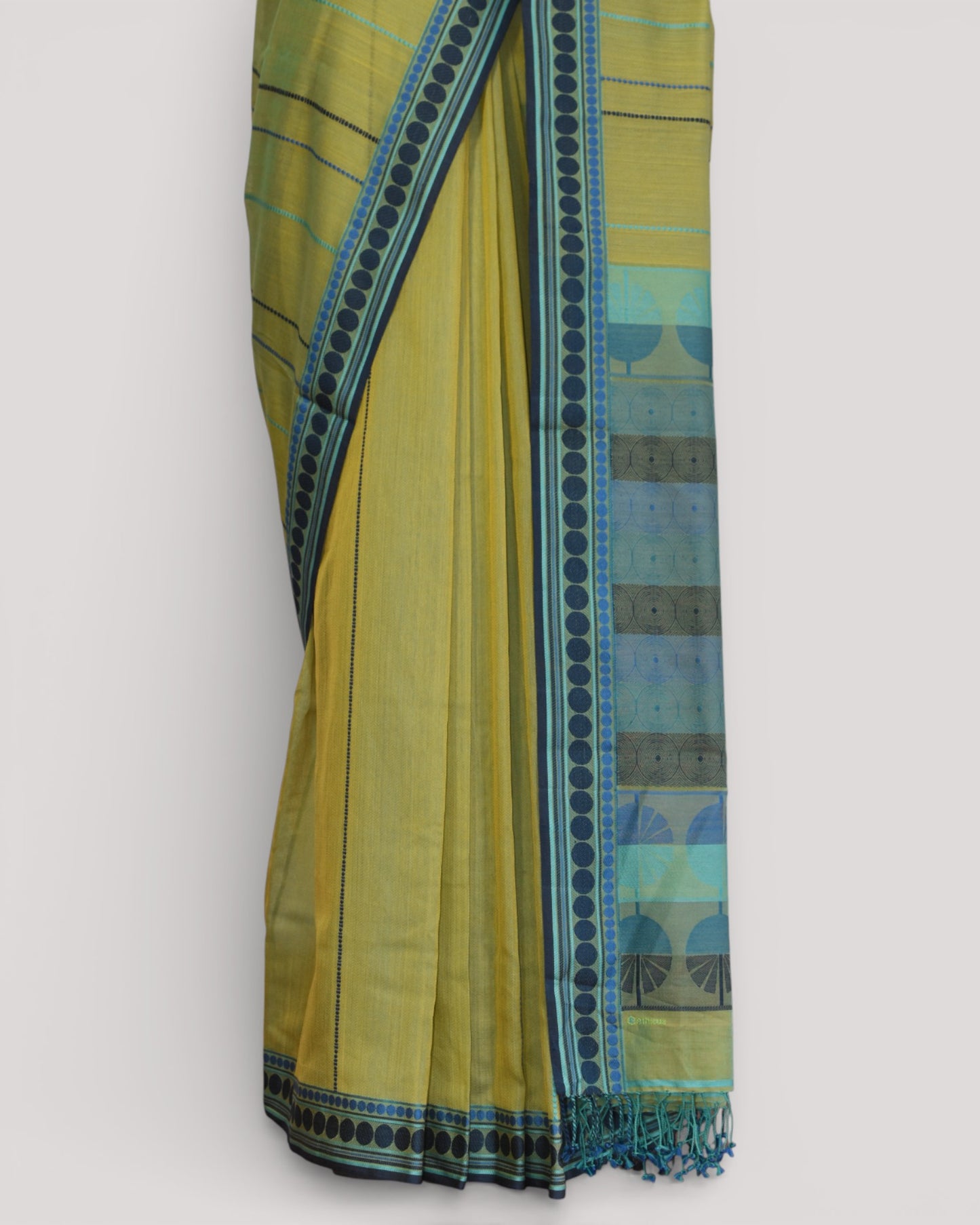 Greenish Yellow - Spherical Grace Organic Cotton Saree