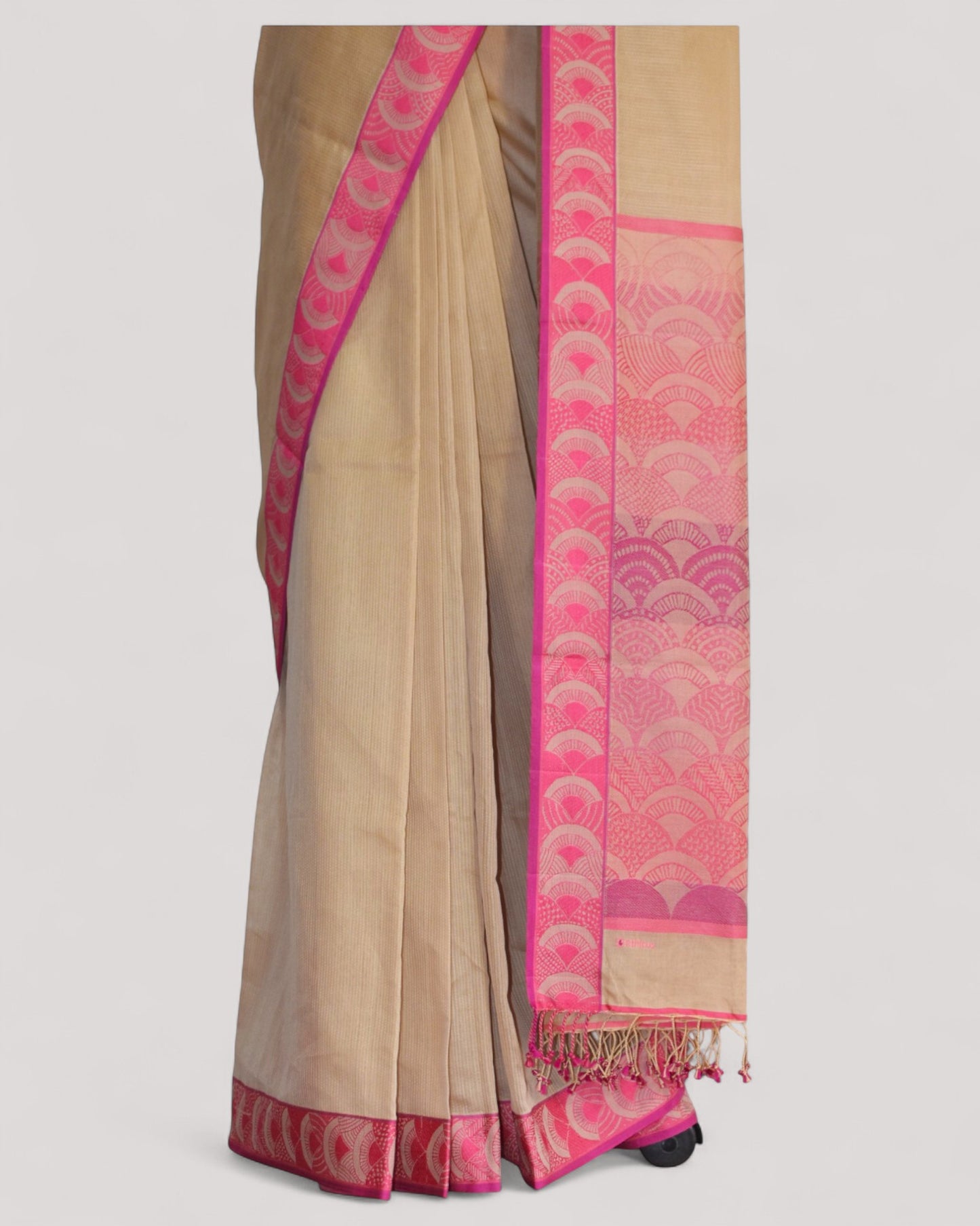 Beige - Arch Motif Organic Cotton Saree