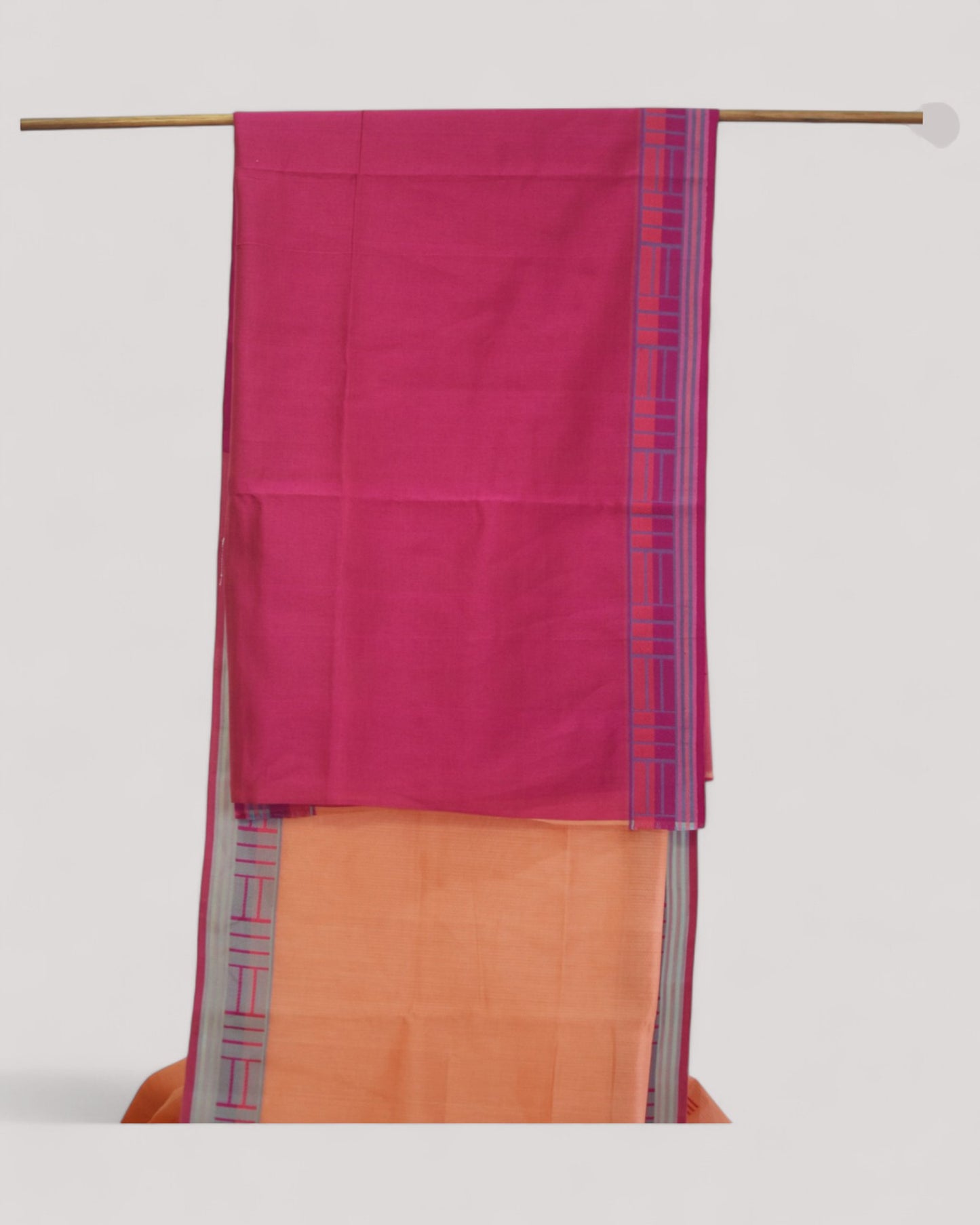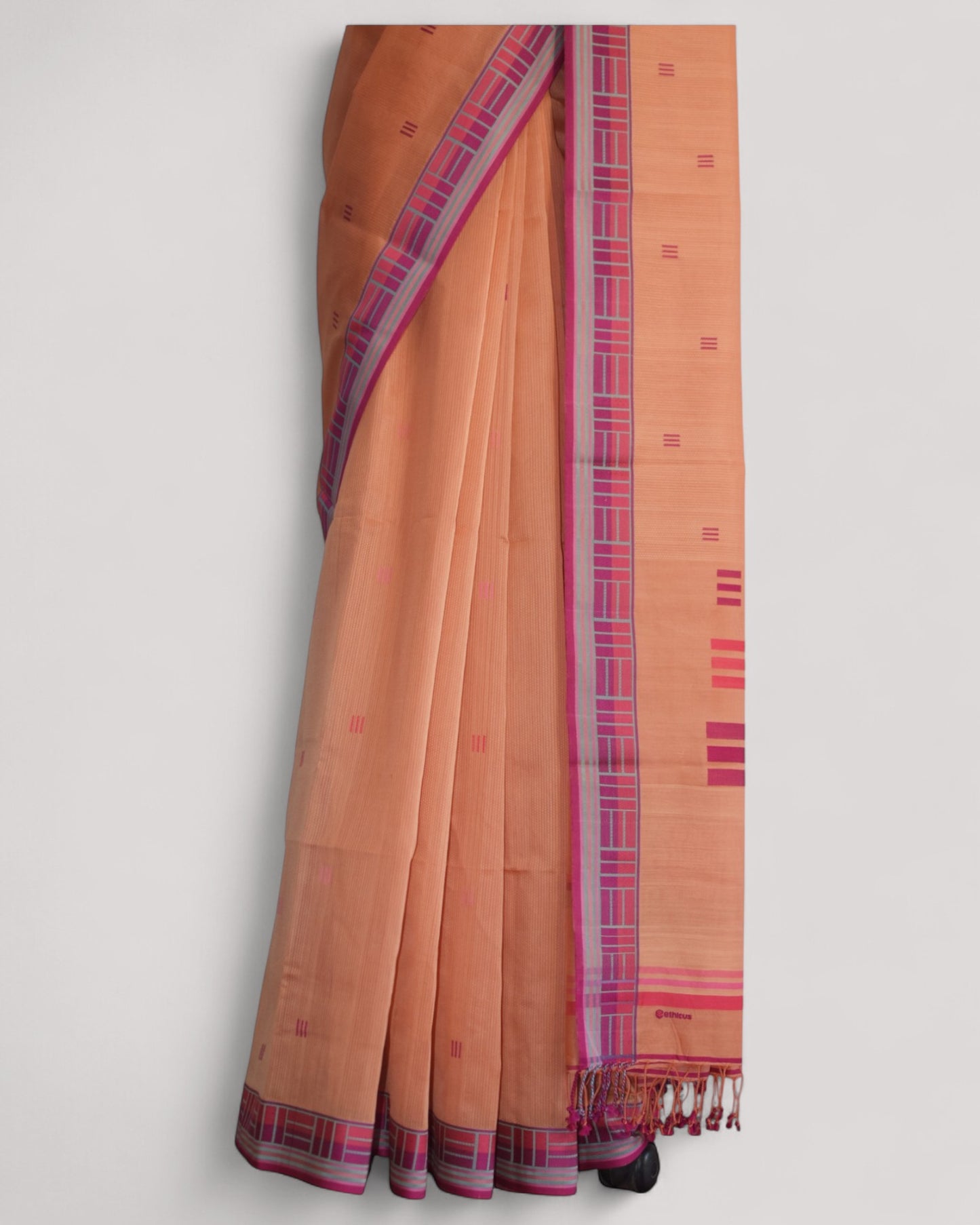 Peach - Regal Rectangle Motif Organic Saree