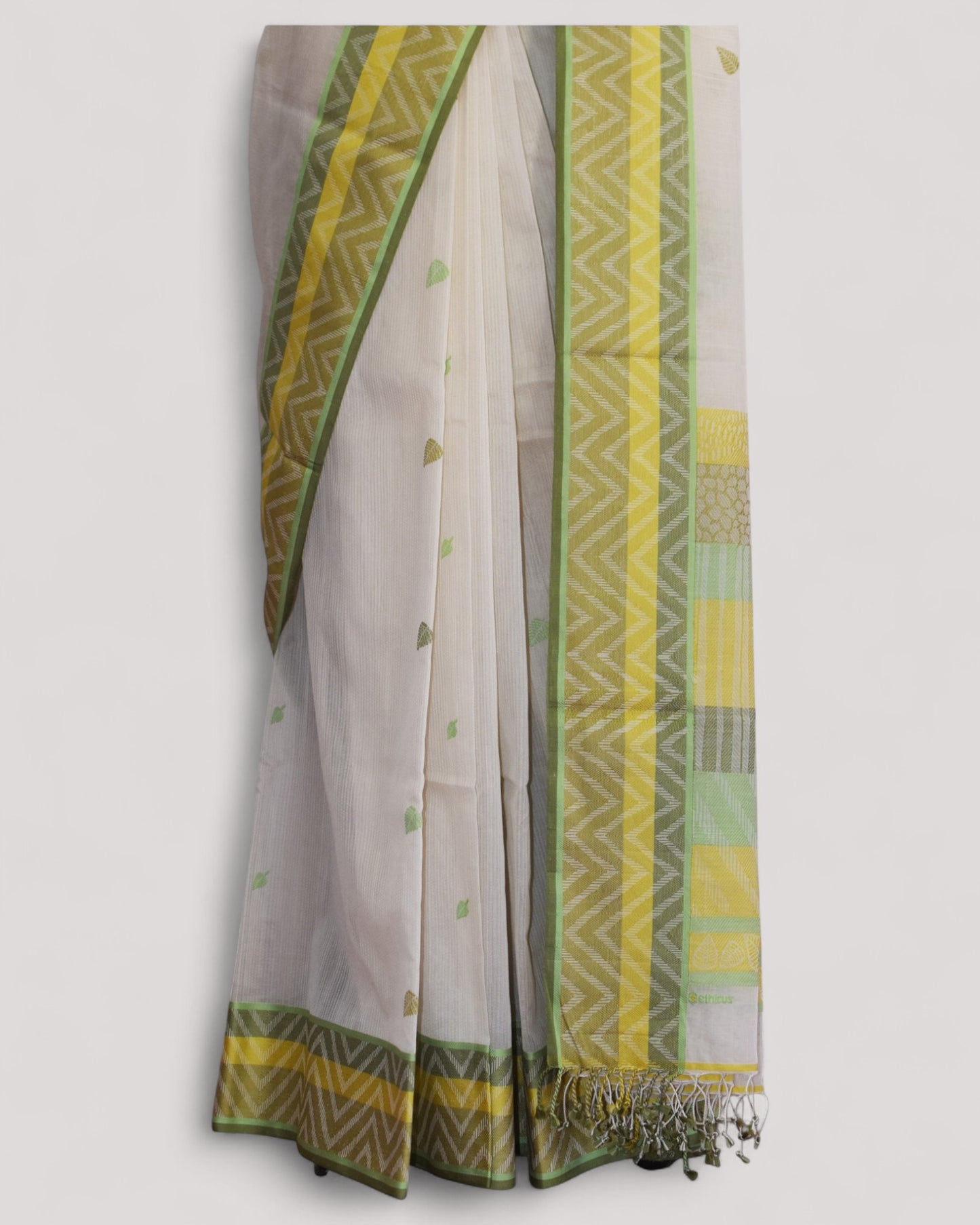 White - Tree & Leaves Motif Organic Cotton Saree